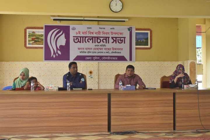 বিশ্ব নারী দিবস উপলক্ষে মৌলভীবাজার জেলা পুলিশের আয়োজনে বিশেষ আলোচনা সভা অনুষ্ঠিত হয়েছে।
