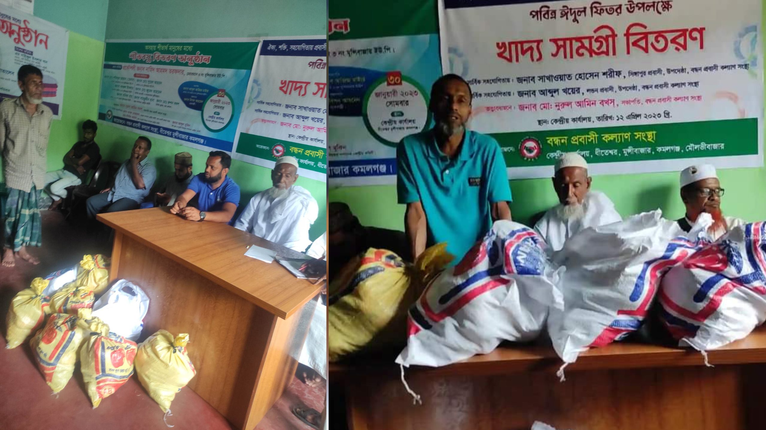 বন্ধন প্রবাসী কল্যাণ সংস্থার পক্ষ থেকে অসহায় দরিদ্র পরিবারের মধ্যে কেন্দ্রীয় কার্যালয় থেকে কমলগঞ্জ উপজেলার শমশেরনগর, টিলাগাও, মুন্সীবাজার,খাদ্য সামগ্রী বিতরণ করা হয়। ১২ এপ্রিল সকাল ১১টায় কেন্দ্রীয় কমিটির সভাপতি নুরুল আমিন বখশ ও কেন্দ্রীয় কমিটির ত্রাণ বিষয়ক সম্পাদক আব্দুল মুকিদ এবং উন্নয়ন বিষয়ক সম্পাদক বদরুল ইসলাম লন্ডন প্রবাসী