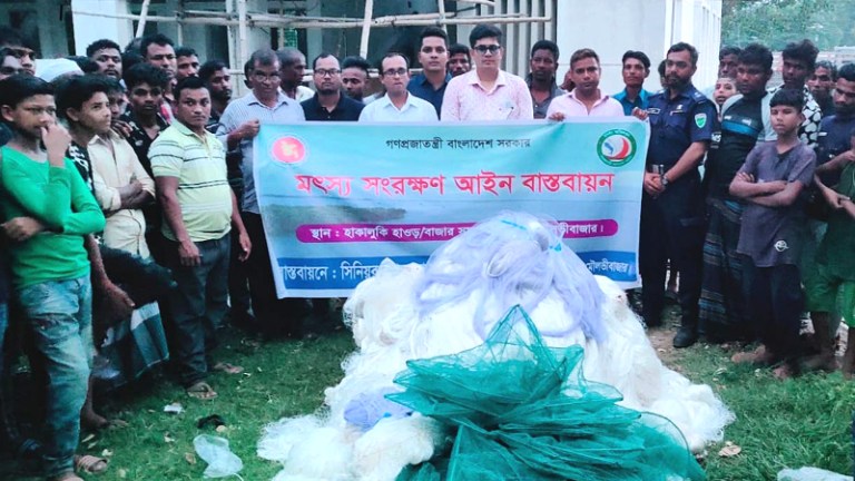 অভিযানে বিপুল পরিমাণ অবৈধ জাল জব্দ, একজন ব্যবসায়ীকে ১০ হাজার টাকা জরিমানা ও অপর এক ব্যবসায়ীর বিরুদ্ধে নিয়মিত মামলা রুজু করা হয়েছে। এধরণের অভিযান অব্যাহত থাকবে।