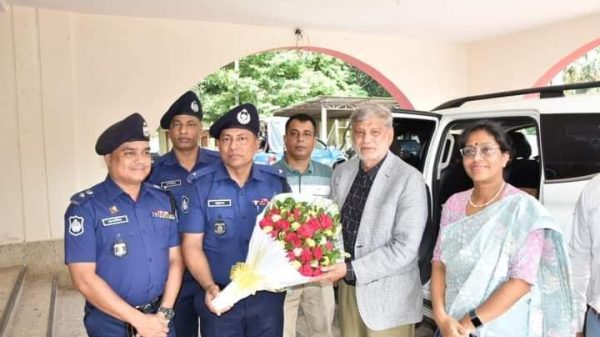 বুধবার দুপুরে মাননীয় মন্ত্রী মহোদয় থানা প্রাঙ্গণে পৌঁছালে সদর মডেল থানার অফিসার ইনচার্জ জনাব হারুনুর রশিদ চৌধুরী তাঁকে ফুল দিয়ে স্বাগত জানান।