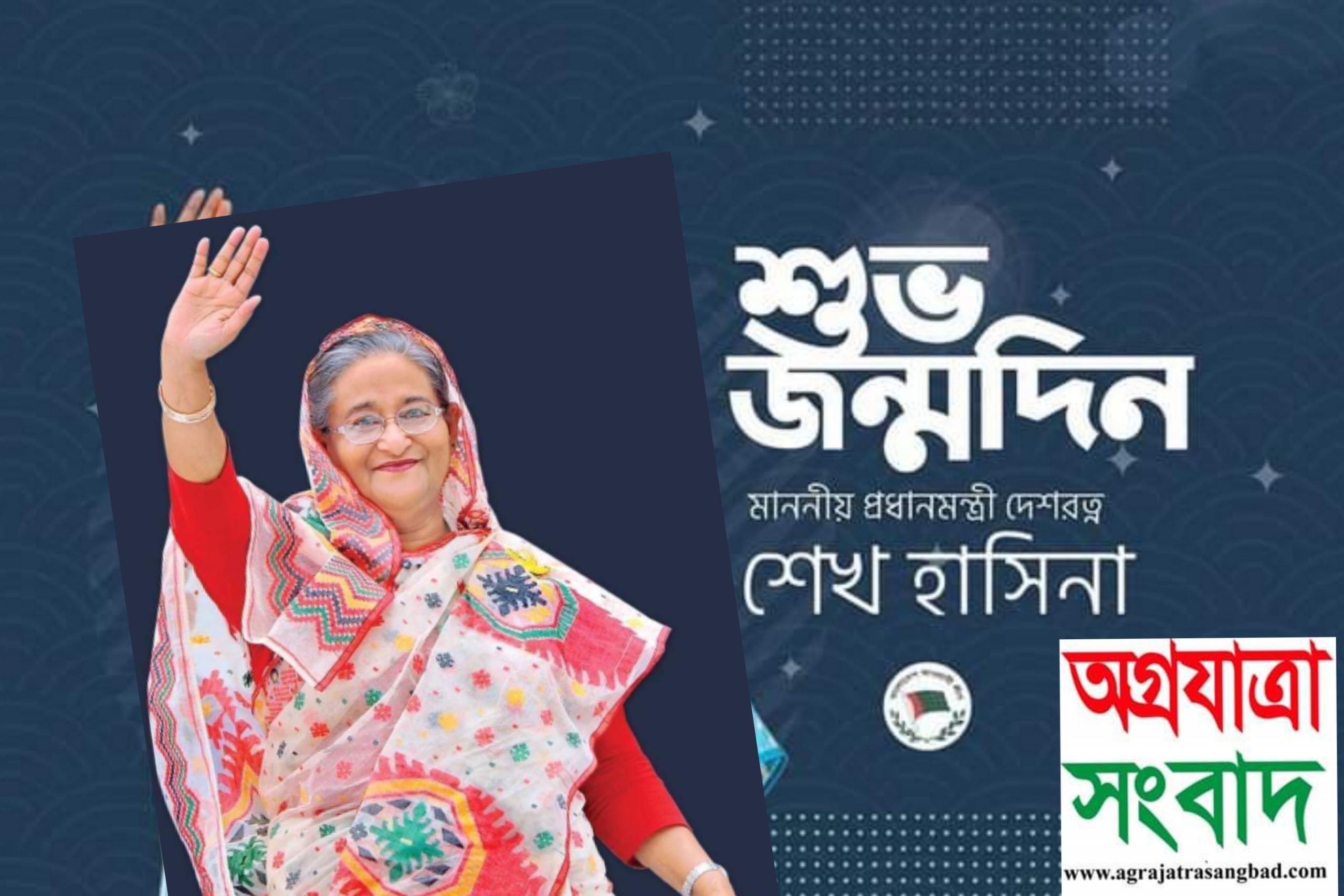 জাতির জনক বঙ্গবন্ধু শেখ মুজিবুর রহমান ও বঙ্গমাতা শেখ ফজিলাতুন্নেসা মুজিবের জ্যেষ্ঠ সন্তান প্রধানমন্ত্রী শেখ হাসিনার ৭৪তম জন্মদিন আজ। অনলাইন নিউজ পোর্টাল "অগ্রযাত্রা সংবাদ" এর পক্ষ থেকে শুভ জন্মদিন। ১৯৪৭ সালের ২৮ সেপ্টেম্বর গোপালগঞ্জের টুঙ্গিপাড়ায় জন্মগ্রহণ করেন শেখ হাসিনা। দলের এই সর্বোচ্চ কর্ণধারের জন্মদিনে আওয়ামী লীগসহ বিভিন্ন সামাজিক ও সাংস্কৃতিক সংগঠন তার সুস্বাস্থ্য ও দীর্ঘায়ু কামনায় দোয়ার আয়োজন করেছে। ডিজিটাল বাংলাদেশ বিনির্মাণের প্রবক্তা শেখ হাসিনা ১৯৮১ সালে আওয়ামী লীগের নেতৃত্ব গ্রহণ করেন। দীর্ঘ আন্দোলন সংগ্রামের পর ১৯৯৬ সালে প্রথম সরকার গঠন করেন। এরপর ২০০৮, ২০১৪ ও ২০১৮ সালে চতুর্থবারের মতো নির্বাচনে জয়লাভ করে দেশ পরিচালনা করছেন তিনি। শিক্ষা জীবনের বিভিন্ন স্তর পেরিয়ে ১৯৭৩ সালে ঢাকা বিশ্ববিদ্যালয়ের বাংলা ভাষা ও সাহিত্যে বিভাগ থেকে স্নাতক ডিগ্রি লাভ করেন তিনি। ১৯৬৮ সালে পরমাণুবিজ্ঞানী ড.ওয়াজেদ মিয়ার সাথে শেখ হাসিনার বিয়ে হয়। তার দুই সন্তান সজীব ওয়াজেদ জয় ও সায়মা ওয়াজেদ পুতুলও নিজ নিজ কর্মক্ষেত্রে আজ প্রতিষ্ঠিত। জাতীয় জীবনের বহুক্ষেত্রে অভাবনীয় সাফল্য অর্জন করেছেন শেখ হাসিনা।