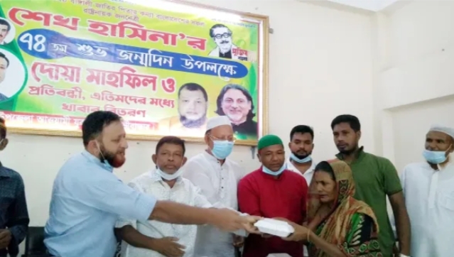 কমলগঞ্জ প্রতিনিধিঃ বঙ্গবন্ধু কন্যা, সফল রাষ্ট্রনায়ক, প্রধানমন্ত্রী শেখ হাসিনার ৭৪তম জন্মদিনে কমলগঞ্জ উপজেলা আওয়ামী যুবলীগের উদ্যোগে দোয়া মাহফিল এবং প্রতিবন্ধী ও এতিমদের মধ্যে খাবার বিতরণ করা হয়েছে। সোমবার (২৮ সেপ্টেম্বর) দুপুর ২টায় কমলগঞ্জ পৌর মিলনায়তনে উপজেলা যুবলীগের আহ্বায়ক ও পৌর মেয়র মোঃ জুয়েল আহমেদের সভাপতিত্বে অনুষ্ঠানে প্রধান অতিথি ছিলেন কমলগঞ্জ উপজেলা আওয়ামীলীগের যুগ্ম সাধারণ সম্পাদক, কমলগঞ্জ সদর ইউপি চেয়ারম্যান আব্দুল হান্নান। বঙ্গবন্ধু প্রজন্মলীগ সম্পাদক সাইফুল ইসলামের সঞ্চালনায় বিশেষ অতিথি ছিলেন উপজেলা বিআরডিবির সাবেক চেয়ারম্যান ইমতিয়াজ আহমেদ বুলবুল। অন্যান্যের মধ্যে বক্তব্য রাখেন উপজেলা যুবলীগ সদস্য নিয়াজ মোর্শেদ রাজু, উপজেলা ছাত্রলীগ সভাপতি রাহাত ইমতিয়াজ রিপুল, কলেজ ছাত্রলীগ সভাপতি আব্দুল হাকিম প্রমুখ। অনুষ্ঠান শেষে প্রধানমন্ত্রী শেখ হাসিনা ও দেশের সকল মানুষের জন্য দোয়া করা হয় এবং এতিম ও প্রতিবন্ধীদের মধ্যে খাবার বিতরণ করা হয়।