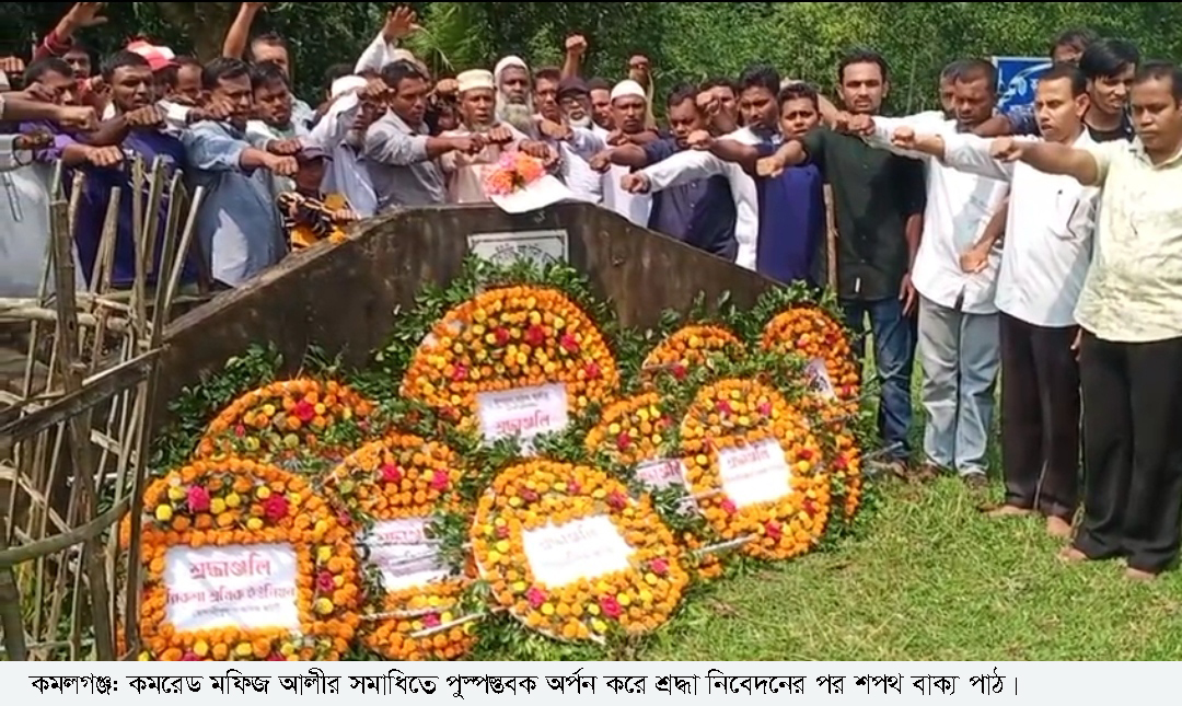 আব্দুল বাছিত খান: ভাষা সৈনিক, প্রখ্যাত রাজনীতিবিদ, চা শ্রমিক নেতা, শিক্ষাবিদ ও লেখক কমরেড মফিজ আলীর ১৫ তম মৃত্যু বার্ষিকী পালিত হয়েছে। বাংলাদেশ ট্রেড ইউনিয়ন সংঘ মৌলভীবাজার জেলা কমিটির উদ্যোগে ১০ অক্টোবর মঙ্গলবার সকাল সাড়ে ১০টায় কমলগঞ্জ উপজেলার পতনঊষার ইউনিয়নের ধূপাটিলাস্থ প্রয়াতের সমাধিস্থলে পুষ্পস্তবক অর্পন শেষে আলোচনা সভা অনুষ্ঠিত হয়।