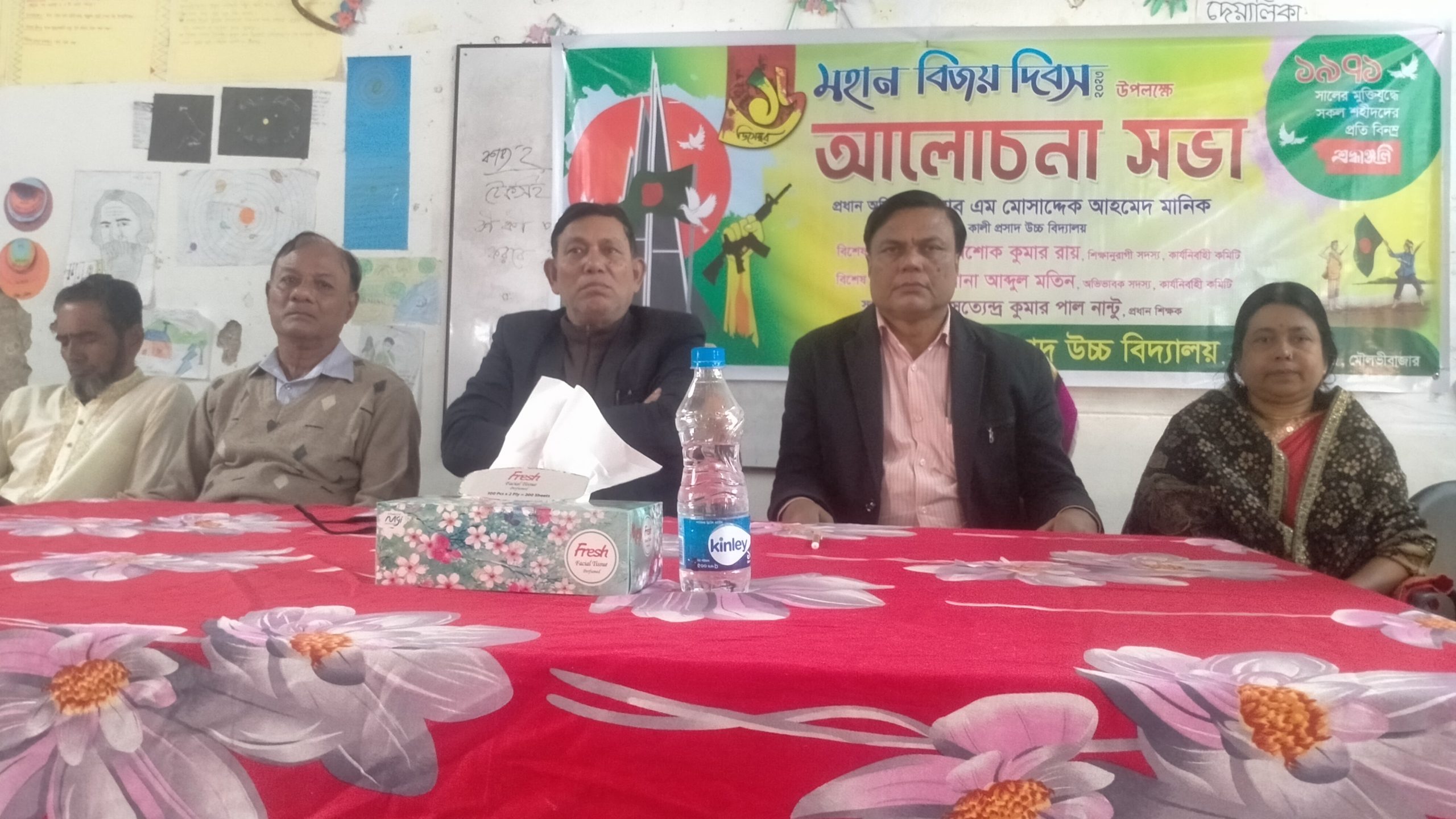 কালীপ্রসাদ উচ্চবিদ্যালয়ের প্রধান শিক্ষক সত্যেন্দ্র কুমার পাল নান্টুর সভাপতিত্বে সহকারী শিক্ষক ফরিদ উদ্দিন এর সঞ্চালনায় আলোচনা সভায় প্রধান অতিথি হিসেবে উপস্তিত ছিলেন, বিদ্যালয়ের সভাপতি বীর মুক্তিযোদ্ধা এম মোসাদ্দেক আহমেদ মানিক,