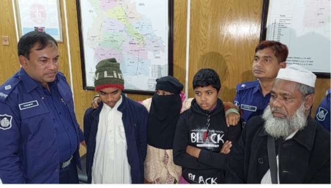 পড়াশুনার চাপে পালিয়ে যাওয়া মাদরাসার ছাত্র দুই ভাইকে মৌলভীবাজার জেলা পুলিশের সার্বিক সহযোগিতায় উদ্ধার করে ফিরিয়ে দিল মা-বাবার কাছে।রোববার (১৭ ডিসেম্বর) মৌলভীবাজার মডেল থানার অফিসার ইনচার্জ কে এম নজরুল ইসলাম এক সংবাদ বিজ্ঞপ্তি মাধ্যমে এ তথ্য নিশ্চিত করেন তারা হলেন, মৌলভীবাজার সদর উপজেলার একাটুনা ইউনিয়নের উলুয়াইল গ্রামের নাজমুল আহমদ চৌধুরীর ছেলে মোঃ শরীফুল ইসলাম চৌধুরী (১২) ও আরিফুল ইসলাম চৌধুরী রাহি (১৪)। জানা যায় তাদের মামাতো ভাই মোবেদুর রহমান গত ১০ সেপ্টেম্বর মৌলভীবাজার সদর মডেল থানায় একটি সাধারণ ডায়রী করেন। পরে তদন্ত অফিসার এসআই অঞ্জন চন্দ্র সরকার এর উপর দায়িত্ব অর্পন করা হয়। পুলিশ সুপার নির্দেশে ভিকটিম উদ্ধারের জন্য তদন্তকারী অফিসার এর অনুসন্ধান কার্যক্রম চলমানরত অবস্থায় এবং তৎপরতায় ভিকটিমকে ১৬ ডিসেম্বর সকাল ৭ টার সময় নিজ বাড়িতে চলে আসিলে। ভিকটিমদ্বয়ের মাতা আফতারুন বেগম (৪০) এবং মামা মোঃ আবুল কালাম (৫৫) দ্বয়ের সহায়তায় মৌলভীবাজার সদর মডেল থানায় আসিয়া হাজির হইলে, তাদেরবে জিজ্ঞাসাবাদ করলে তারা জানায়,শাহধরন হাফিজিয়া মাদরাসা ও কাজির বাজার মাদরাসায় তারা লেখা পড়া করত। পড়াশুনার চাপ সহ্য করিতে না পারিয়া পরস্পর তারা দুই ভাই আলোচনা করে গত ১০ সেপ্টেম্বর রাত ১০ টার দিকে শেরপুর বাসস্ট্যান্ড হইতে হানিফ বাস যোগে ঢাকায় চলে যায়। পরবর্তীতে ঢাকার টঙ্গী এলাকায় নিজেদের পরিচয় গোপন রেখে ভিকটিম আরিফুল ইসলাম চৌধুরী রাহি (১৪) কাপড়ের ফ্যাক্টরীতে এবং মোঃ শরীফুল ইসলাম চৌধুরী (১২) সাবানের ফ্যাক্টরীতে কাজ নেয়।পুলিশের তৎপরতা জানতে পেরে তারা নিজেরাই চলে আসে।