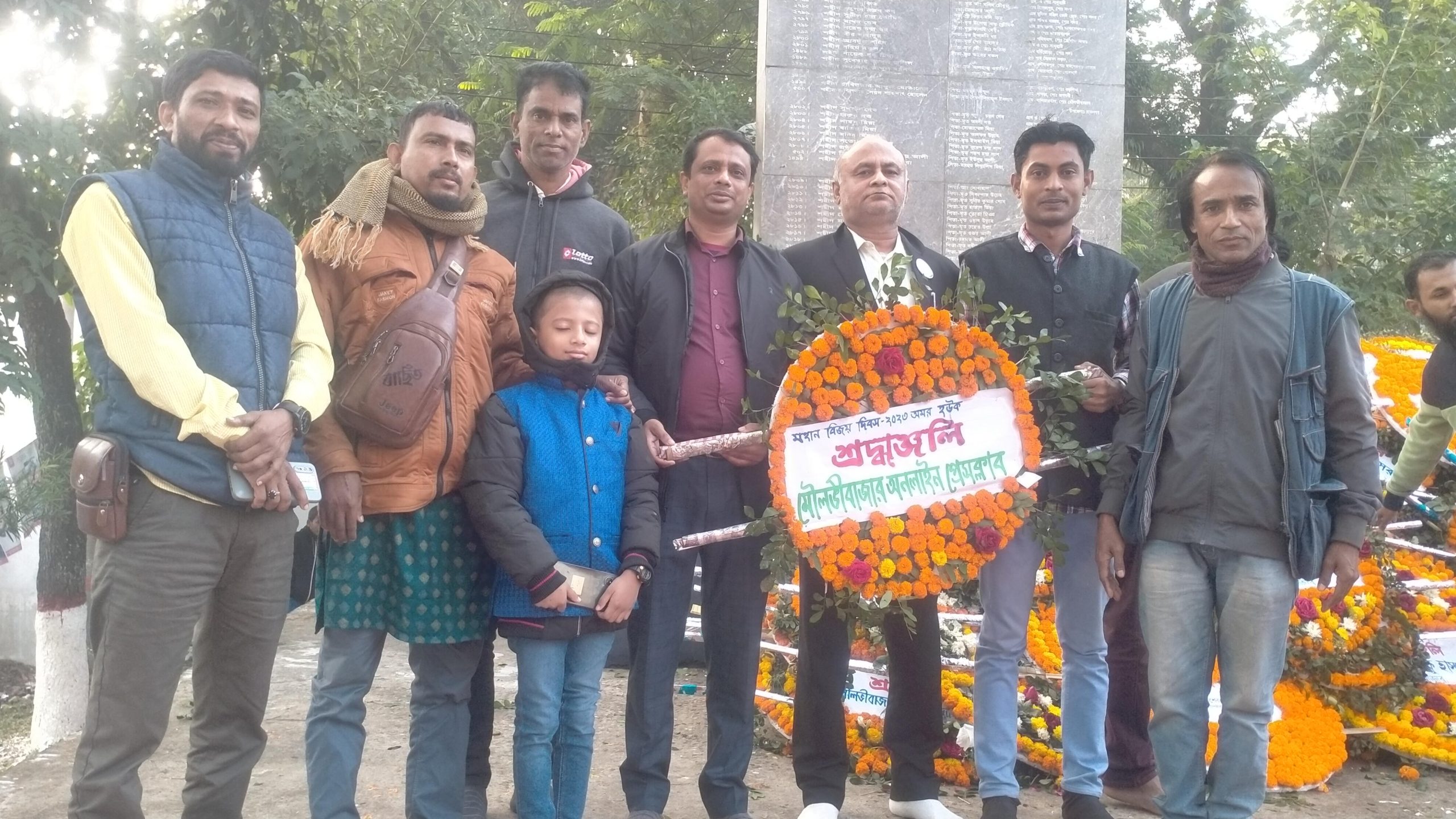 মৌলভীবাজার প্রতিনিধি : মৌলভীবাজার অনলাইন প্রেসক্লাব এর উদ্যাগে মহান বিজয় দিবস-২০২৩ইং উপলক্ষ্যে র্যালী, কেন্দ্রীয় স্মৃতিসৌধে পুষ্পস্তবক অর্পণ ও আলোচনাসভা অনুষ্ঠিত হয়েছে। গত ১৬ ডিসেম্বর সকালে মৌলভীবাজার অনলাইন প্রেসক্লাবের সাধারণ সম্পাদক মশাহিদ আহমদ এর সঞ্চালনায় র্যালীটি মৌলভীবাজার অনলাইন প্রেসক্লাব কার্যালয় (সেন্ট্রাল রোড, সোনালী ব্যাংক এর বিপরীতে) থেকে শুরু হয়ে মৌলভীবাজার সরকারী উচ্চ বিদ্যালয় মাঠ কেন্দ্রীয় স্মৃতিসৌধে গিয়ে শেষ হয়। শহীদদের স্বরণে স্মৃতিসৌধে পুষ্পস্তবক অর্পন করেন, মৌলভীবাজার অনলাইন প্রেসক্লাবের সদস্যরা। এ সময় নেতৃবৃন্দদের মধ্যে উপস্থিত ছিলেন- মোঃ জোসেপ আলী চৌধুরী (দৈনিক নয়া বঙ্গবাজার), কে.এম.সাইদুল ইসলাম ( দৈনিক খবরপত্র), আব্দুল বাছিত খান (দৈনিক খবরপত্র/ দৈনিক নতুন সময়), চিনু রঞ্জন তালুকদার, (দৈনিক গণমুক্তি), রিপন আহমদ (দৈনিক ভোরের সময়), জাহেদুল ইসলাম পাপ্পু (কুলাউড়ার ডাক), মো: আব্দুল্লাহ (পাতাকুড়ির দেশ), বিজয় সাহা দৈনিক আজকালের সংবাদ) প্রমুখ। অন্যান্যদের মধ্যে উপস্থিত ছিলেন- এ.বি.এল এ ওয়েলফেয়ার এসোসিয়েশন ইউকে বাংলাদেশ সভাপতি ও তাওহীদ ইসলাম দাবী একাডেমীর প্রতিষ্ঠাতা ও পরিচালক তাওহীদ ইসলাম। স্মৃতিসৌধে পুষ্পস্তবক অর্পণ শেষে মৌলভীবাজার অনলাইন প্রেসক্লাব কার্যালয়ে আলোচনাসভা অনুষ্ঠিত হয়।