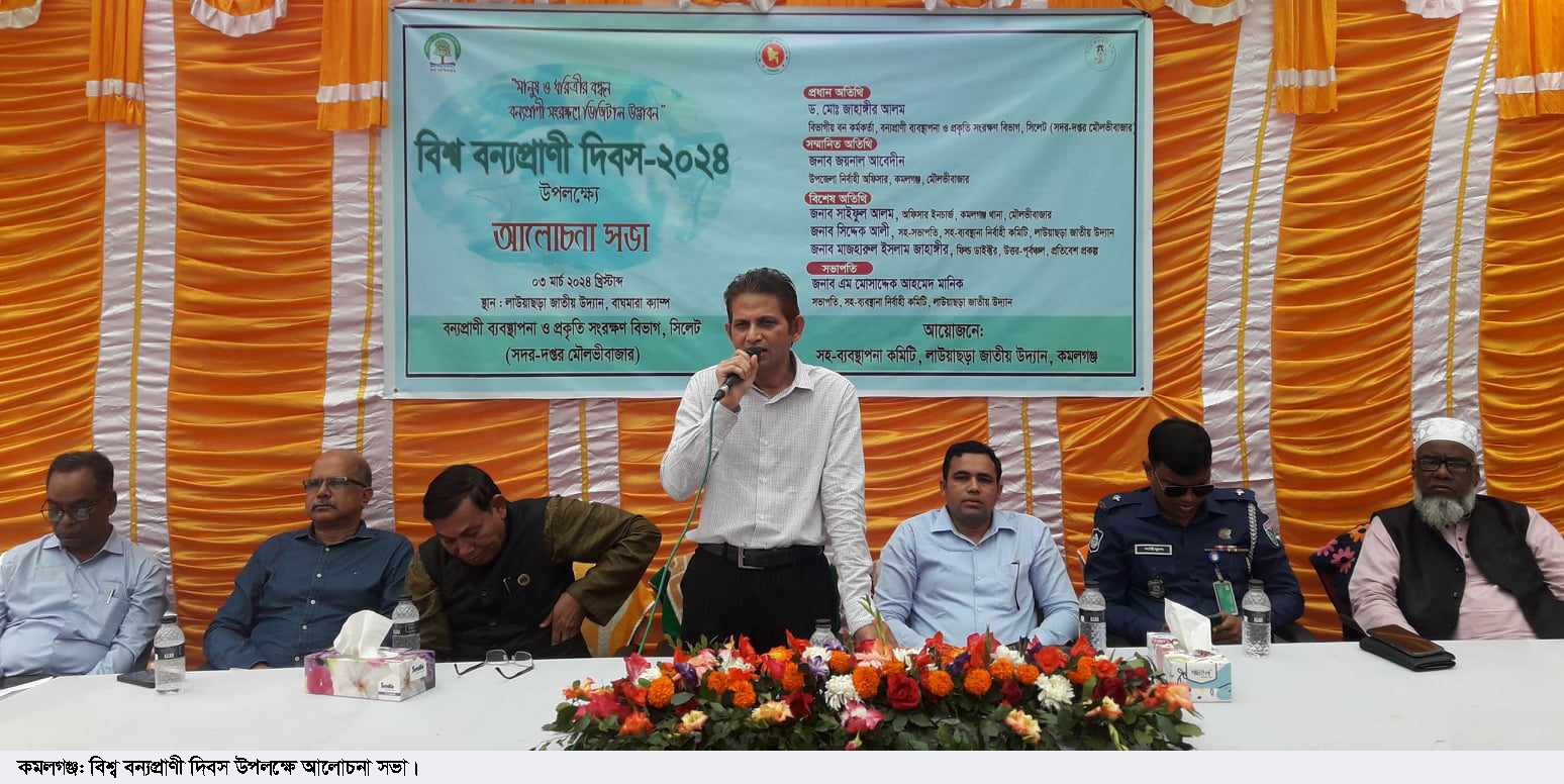 "মানুষ ও ধরিত্রীর বন্ধন, বন্যপ্রাণী সংরক্ষণে ডিজিটাল উদ্ভাবন" এই প্রতিপাদ্যে মৌলভীবাজারের কমলগঞ্জে বিশ্ব বন্যপ্রাণী দিবস পালিত হয়েছে। এ উপলক্ষে রোববার (৩ মার্চ) সকাল সাড়ে ১০টায় লাউয়াছড়া জাতীয় উদ্যান সহ-ব্যবস্থাপনা কমিটির আয়োজনে ও বন্যপ্রাণী ব্যবস্থাপনা ও প্রকৃতি সংরক্ষণ বিভাগের সহযোগিতায় লাউয়াছড়া বাগমারা ক্যাম্পে আয়োজিত আলোচনা অনুষ্ঠানে প্রধান অতিথি ছিলেন সিলেট বিভাগীয় বন কর্মকর্তা (বন্যপ্রাণী ব্যবস্থাপনা ও প্রকৃতি সংরক্ষণ বিভাগ) ড. মোঃ জাহাঙ্গীর আলম।