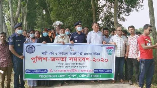 নিজস্ব প্রতিবেদক: “বন্ধ হোক নারী নির্যাতন,নিশ্চিত হোক দেশের উন্নয়ন”এই স্লোগানে মৌলভীবাজারের কমলগঞ্জে ধর্ষণ ও নির্যাতন বিরোধী বিট পুলিশিং সমাবেশ ও র্যালি অনুষ্ঠিত হয়েছে। শনিবার সকালে জেলা পুলিশ মৌলভীবাজারের আয়োজনে কমলগঞ্জ থানা পুলিশের নারী ধর্ষন ও নির্যাতন বিরোধী বিট পুলিশিং সমাবেশ ও র্যালি অনুষ্ঠিত হয়। শনিবার সকাল ১০টায় কমলগঞ্জ থানা চত্বরে কমলগঞ্জ থানার ওসি আরিফুর রহমানের সভাপতিত্বে অনুষ্ঠিত পৌর বিটের সমাবেশে প্রধান অতিথি ছিলেন কমলগঞ্জ উপজেলা পরিষদের চেয়ারম্যান বীর মুক্তিযোদ্ধা অধ্যাপক রফিকুর রহমান। বিশেষ অতিথি ছিলেন কমলগঞ্জ উপজেলা আওয়ামী লীগের সভাপতি আছলম ইকবাল মিলন, সাধারন সম্পাদক এ্যাডভোকেট এএসএম আজাদুর রহমান, পৌর মেয়র মো: জুয়েল আহমেদ, উপজেলা পরিষদের মহিলা ভাইস চেয়ারম্যান বিলকিছ বেগম, জেলা যুবলীগের সহ-সভাপতি পৌর কাউন্সিলর আনোয়ার হোসেন, ভানুগাছ বাজার পৌর বণিক সমিতির সাধারন সম্পাদক এ্যাডভোকেট সানোয়ার হোসেন। সমাবেশের আগে বের হয় র্যালি। সমাবেশ ও র্যালিতে স্থানীয় গণ্যমান্য ব্যক্তিবর্গ, শিক্ষক-শিক্ষার্থীসহ বিভিন্ন শ্রেণীপেশার নারী পুরুষ অংশ নেন। একই সময়ে উপজেলার সবক’টি বিটে র্যালি ও সমাবেশ করা হয়েছে