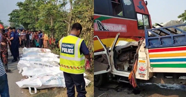 ঘটনাস্থলে পুলিশের পাশাপাশি কাজ করছে ফায়ার সার্ভিসের সদস্যরা। দুর্ঘটনায় ফরিদপুর-যশোর মহাসড়কে প্রায় ১৫ কিলোমিটার যানজটের সৃষ্টি হয়েছে। তাৎক্ষণিকভাবে সব নিহতের পরিচয় নিশ্চিত হওয়া যায়নি।