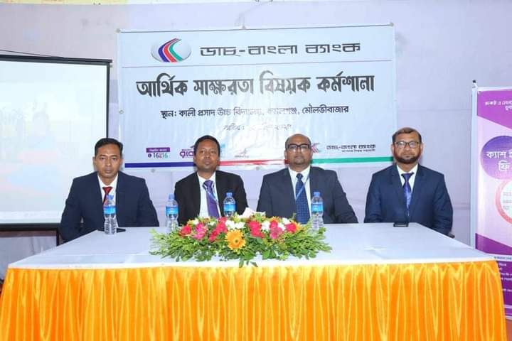 কমলগঞ্জ উপজেলার মুন্সীবাজারস্থ কালী প্রসাদ উচ্চ বিদ্যালয়ে ডাচ্-বাংলা ব্যাংক এর আয়োজনে আর্থিক সাক্ষরতা বিষয়ক কর্মশালা অনুষ্ঠিত হয়। ২৩ এপ্রিল মঙ্গলবার সকাল থেকে বিকাল পর্যন্ত এ কর্মশালা অনুষ্টিত হয়। এতে সভাপতিত্ব করেন, মৌলভীবাজার মোবাইল ব্যংকিং এবং এজেন্ট ব্যংকিং অফিস ইনচার্জ মোহাম্মদ জাকির হোসেন সরকার এবং সুরেশ রঞ্জন তালুকদার, এরিয়া ম্যানেজার, এজেন্ট ব্যংকিং মৌলভীবাজার শাখা’র সঞ্চালনায় প্রধান অতিথি হিসেবে উপস্থিত ছিলেন