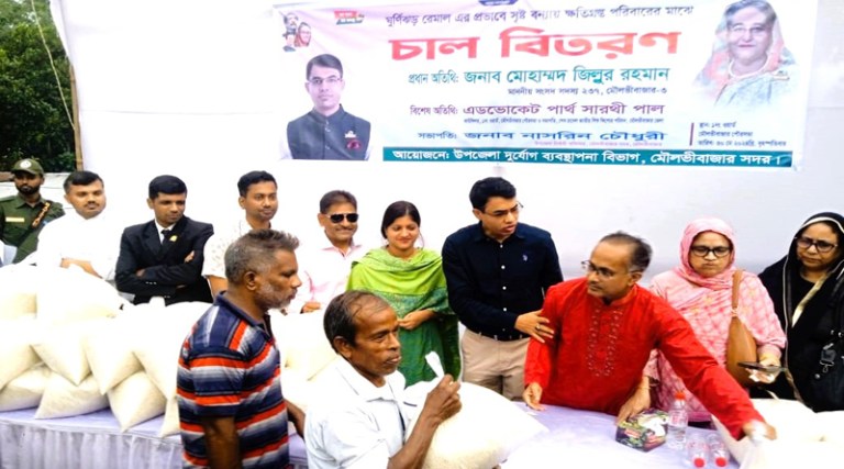 বৃহস্পতিবার ৩০ মে বিকেল ৩টায় মৌলভীবাজার পৌরসভার ১নং ওয়ার্ডে উপজেলা দূর্যোগ ব্যবস্থাপনা বিভাগের আয়োজনে চাল বিতরণ অনুষ্ঠানে প্রধান অতিথি ছিলেন মৌলভীবাজার-৩ (সদর-রাজনগর) আসনের সংসদ সদস্য মোহাম্মদ জিল্লুর রহমান।