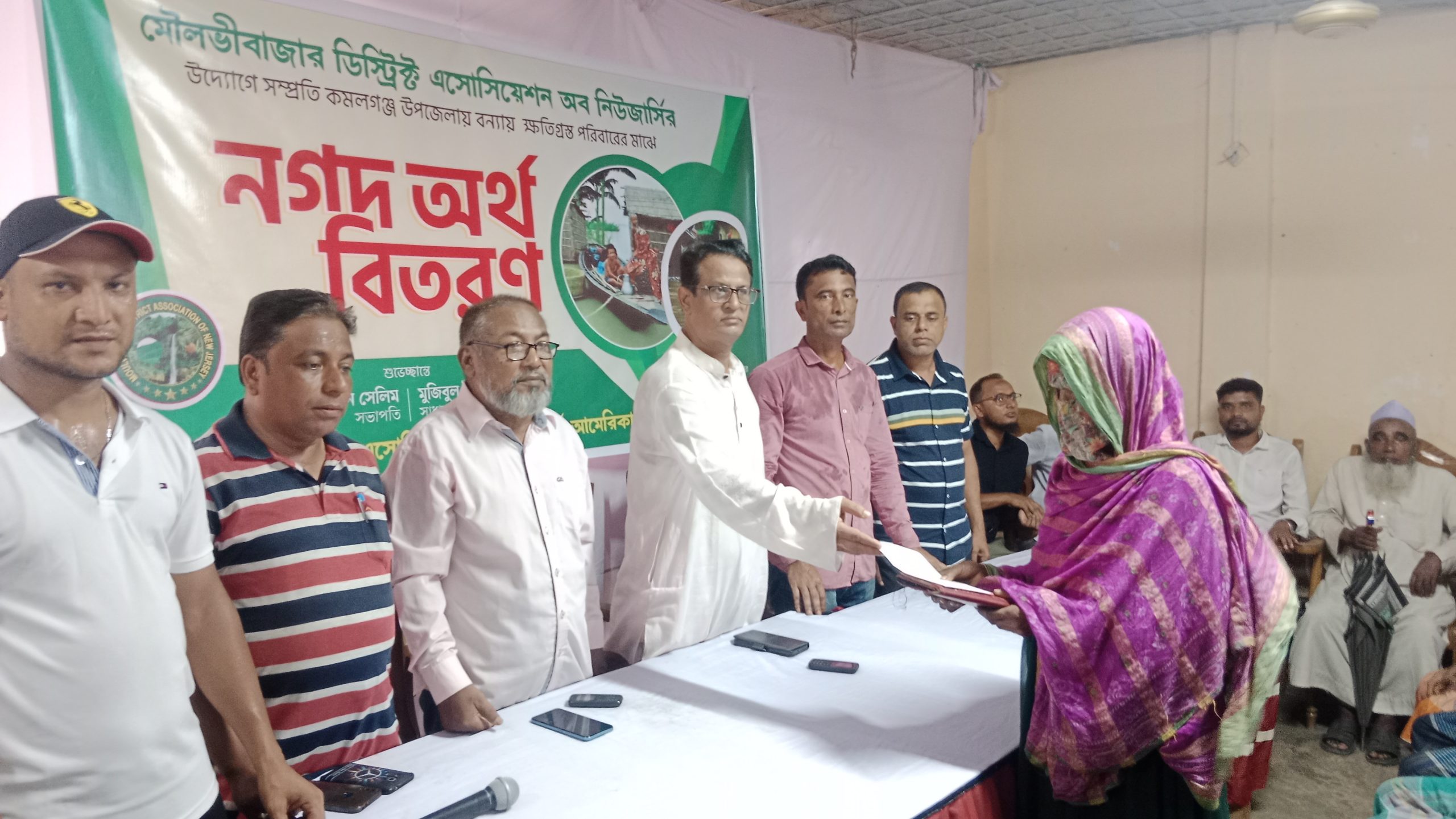 জেলার শ্রেষ্ঠ সমাজ সেবক আব্দুল হান্নান চিনুর সভাপতিত্বে ও শাহজাহান আলী রাজু ও মাহিদুল ইসলামের সঞ্চালনায় অনুষ্ঠানে প্রধান অতিথি হিসেবে উপস্থিত ছিলেন পতনঊষার ইউনিয়ন পরিষদের চেয়ারম্যান অলি আহমদ খান।বিশেষ অতিথি হিসেবে উপস্থিত ছিলেন, বিশিষ্ট সমাজ সেবক জুনেদ আহমদ, সাংবাদিক প্রনিত রঞ্জন দেবনাথ, ইউপি সদস্য আব্দুল হান্নান, সাংবাদিক আব্দুল বাসিত খান, সালাউদ্দিন শুভ, প্রভাষক সুমন আহমদ, সমাজ সেবক বাবলু আহমেদ, বিমল দত্ত রিপন প্রমুখ। মৌলভীবাজার ডিস্ট্রিক্ট এসোসিয়েশন অব নিউজার্সির সভাপতি মো. মহসিন সেলিম ও সাধারণ সম্পাদক মুজিবুল ইসলাম রাহাতের পৃষ্ঠপোষকতায় কমলগঞ্জ বন্যায় ক্ষতিগ্রস্ত বিভিন্ন ইউনিয়নের ৬১ টি পরিবারকে নগদ ২ হাজার টাকা করে ১ লাখ ২২ হাজার টাকা বিতরণ করা হয়েছে।