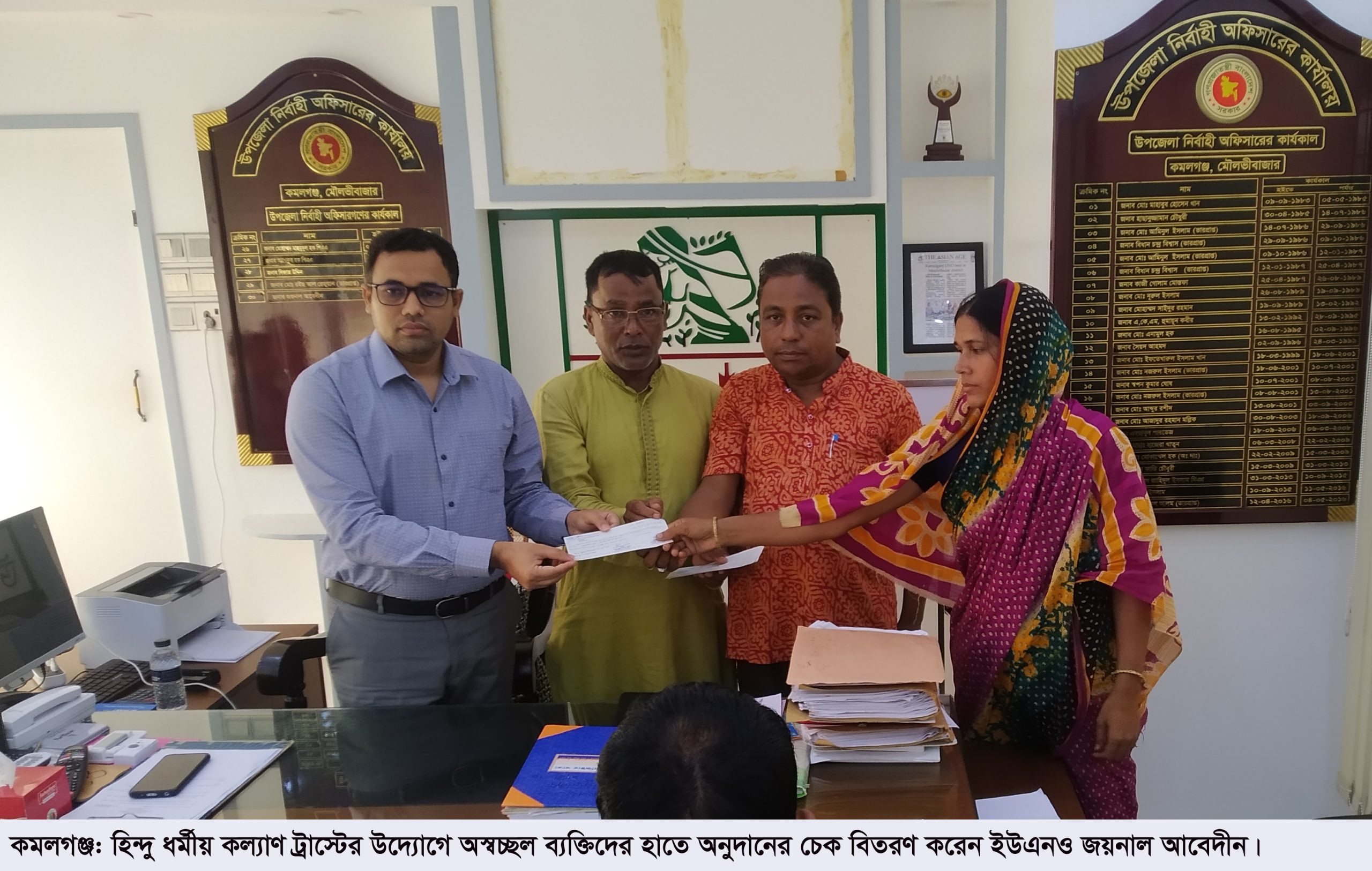অনুষ্ঠানে কমলগঞ্জ উপজেলার ৮টি মন্দির সংস্কারের জন্য ২০ হাজার টাকা করে ও ৯ জন অস্বচ্ছল ব্যক্তিদের কাছে ৫ হাজার টাকা করে অনুদানের চেক বিতরণ করা হয়।