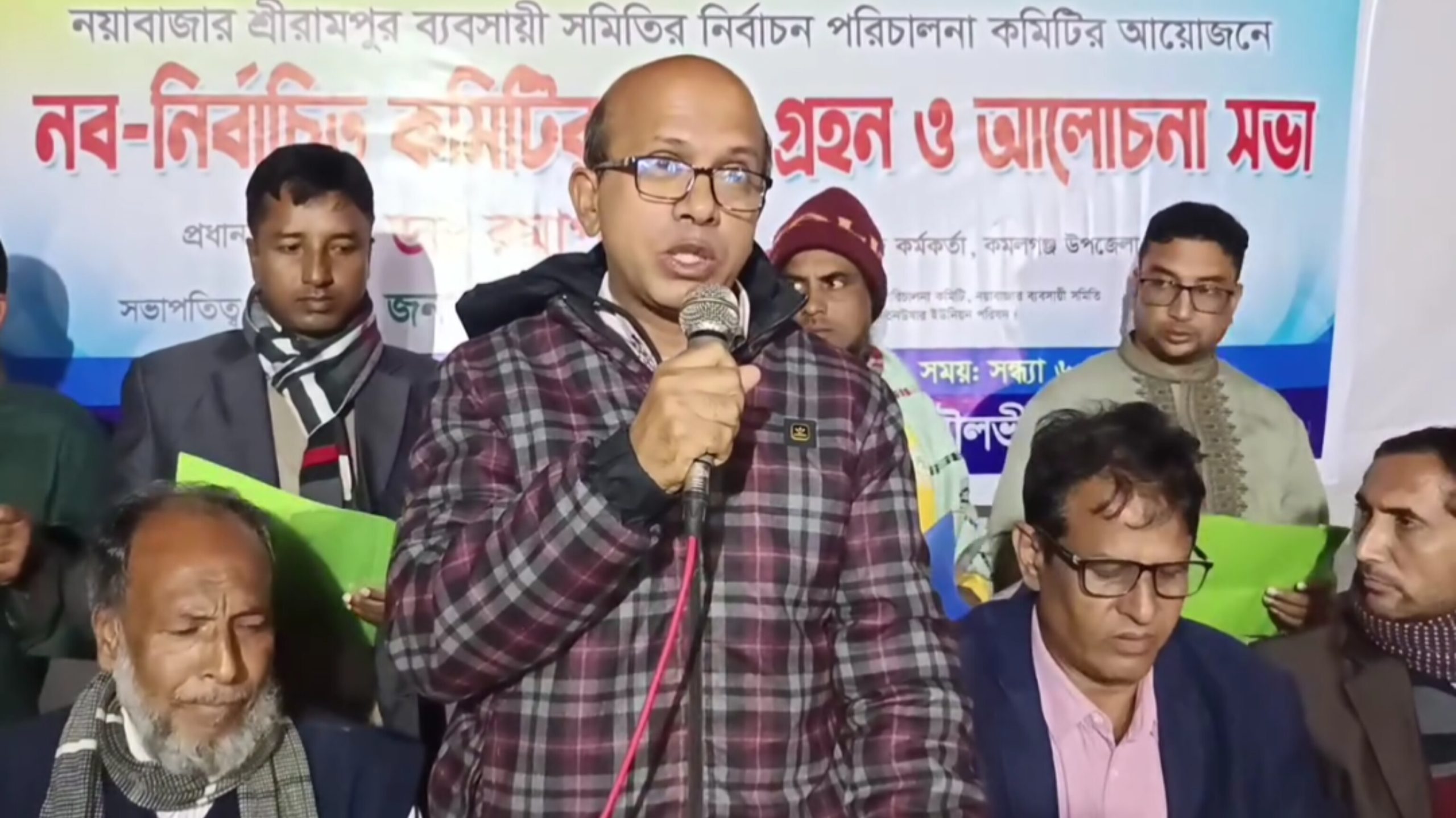 নিজস্ব প্রতিবেদক:মৌলভীবাজারের কমলগঞ্জে নয়াবাজার শ্রীরামপুর ব্যবসায়ী সমিতির নির্বাচন পরিচালনা কমিটির আয়োজনে নব নির্বাচিত কমিটির শপথ গ্রহণ ও আলোচনা সভা অনুষ্ঠিত হয়েছে। বৃহস্পতিবার ৫ ডিসেম্বর রাত সাড়ে ৭ টায় নয়াবাজার শ্রীরামপুরে আলোচনা সভায় সভাপতিত্ব করেন পতনঊষার ইউনিয়ন পরিষদ এর চেয়ারম্যান অলি আহমদ খান। প্রধান অতিথি হিসেবে উপস্থিত ছিলেন কমলগঞ্জ উপজেলা প্রাণী সম্পদ কর্মকর্তা ডা. রমাপদ দেব। শাহাজাহান আলী রাজুর সঞ্চালনায় অনুষ্ঠানে বিশেষ অতিথি হিসেবে উপস্থিত ছিলেন ইউপি সদস্য তোয়াবুর রহমান তবারক, সমিতির প্রধান নির্বাচন কমিশনার শওকত আহমদ, সমাজসেবক মাহমুদুর রহমান বাদশা, সমাজসেবক জুনেদ আহমদ, সমাজসেবক শামসুল ইসলাম লিয়াকত প্রমুখ।