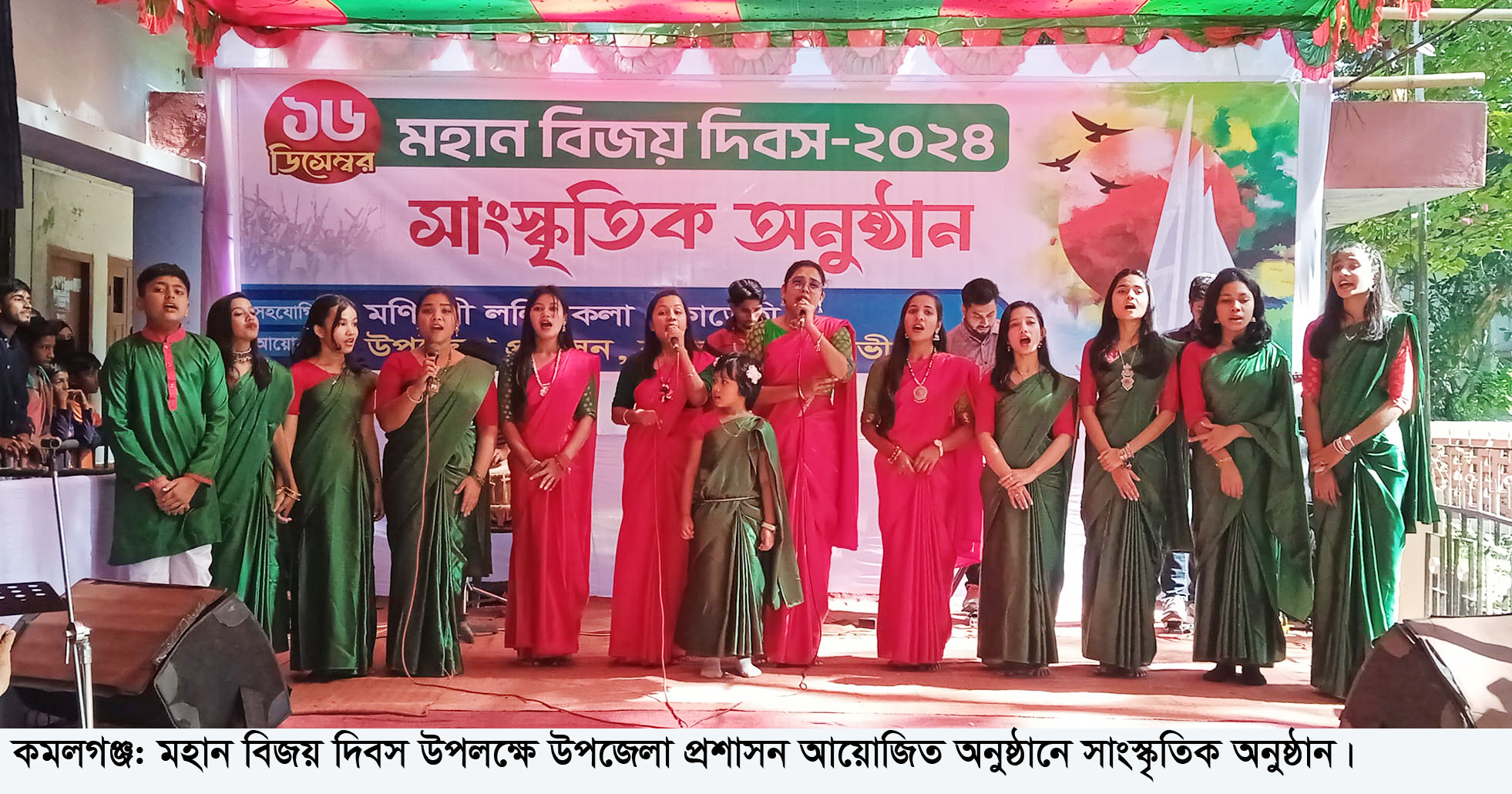 মহান বিজয় দিবস উদযাপন উপলক্ষে সোমবার বিকেলে মাধবপুর শিববাজারস্থ মণিপুরি ললিতকলা একাডেমীর আয়োজনে ললিতকলা একাডেমী অডিটোরিয়ামে সাংস্কৃতিক অনুষ্ঠান ও আলোচনা সভা অনুষ্ঠিত হয়েছে। অনুষ্ঠানে মণিপুরি ললিতকলা একাডেমীর গবেষনা কর্মকর্তা প্রভাস চন্দ্র সিংহের সঞ্চালনায় অনুষ্ঠানে প্রধান অতিথি ছিলেন কমলগঞ্জ উপজেলা সহকারী কমিশনার (ভূমি) ডি, এম সাদিক আল সাফিন। আলোচনা সভায় বক্তারা মহান মুক্তিযুদ্ধের বিভিন্ন স্মৃতি চারণ করেন এবং মুক্তিযুদ্ধের চেতনায় দেশকে এগিয়ে নেয়ার প্রত্যয় ব্যক্ত করেন।