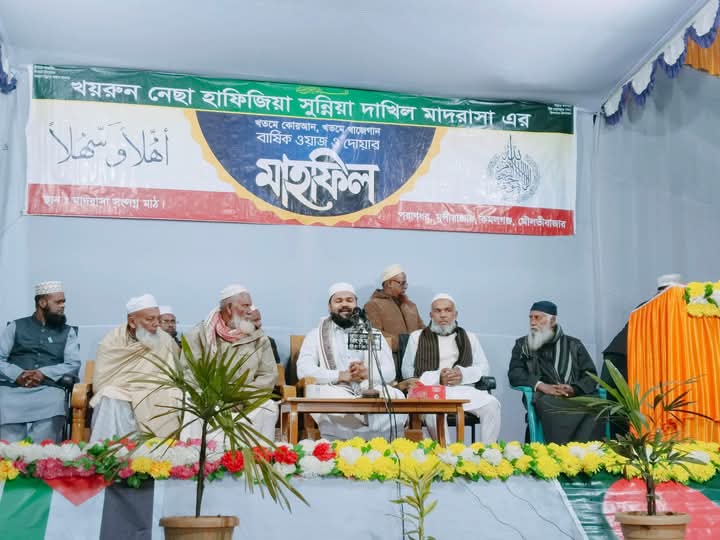 খয়রুন নেছা হাফিজিয়া সুন্নিয়া দাখিল মাদ্রাসার বার্ষিক ওয়াজ ও দোয়া মাহফিল সম্পন্ন হয়েছে। খতমে কোরআন,খতমে খাজেগান এর মাধ্যমে ২৫ ডিসেম্বর বেলা ২ঘটিকা হইতে মধ্যরাত পর্যন্ত মাহফিল চলে। ওয়াজ মাহফিলে সভাপতি মন্ডলীগণ হযরত মাওঃ মনির উদ্দিন সাহেব, খলিফায়ে ফুলতলী, লুৎফুর রহমান মামুন সভাপতি, অত্র মাদ্রাসা, প্রকৌশলী নাহিদ আহমেদ তরফদার চেয়ারম্যান ৩নং মুন্সিবাজার ইউনিয়ন পরিষদ, শফিকুর রহমান মেম্বার, সেক্রেটারি অত্র মাদ্রাসা,মাওলানা নজরুল ইসলাম, সাবেক সুপার অত্র মাদ্রাসা।
