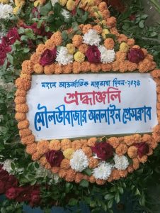মৌলভীবাজারে মহান শহীদ দিবস ও আন্তর্জাতিক মাতৃভাষা দিবস-২০২৫ নানা কর্মসূচীর মধ্য দিয়ে পালিত হয়েছে। একুশের প্রথম প্রহরে ভাষা শহীদদের ফুল দিয়ে শ্রদ্ধা জানাতে শহীদ মিনারে সর্বস্থরের মানুষের ঢল নামে। এ সময় ‘আমার ভাইয়ের রক্তে রাঙানো একুশে ফেব্রুয়ারি আমি কি ভুলিতে পারি’গানের সুর বাজতে থাকে। ফুলে ফুলে ভরে উঠে শহীদ বেদী। একুশের প্রথম প্রহরে স্থানীয় শহীদ মিনারে ফুল দিয়ে শ্রদ্ধা জানান, মৌলভীবাজার অনলাইন প্রেসক্লাব নেতৃবৃন্দ। মৌলভীবাজার অনলাইন প্রেসক্লাব কার্যালয় (সেন্ট্রাল রোড, সোনালী ব্যাংক এর বিপরীত) এর সামন থেকে প্রভাতফেরি শুরু হয়ে কেন্দ্রীয় শহিদ মিনারে সমাপ্ত হয়। এ সময় উপস্থিত ছিলেন- মৌলভীবাজার অনলাইন প্রেসক্লাবের সহ-সভাপতি জোসেপ আলী চৌধুরী (দৈনিক নয়া বঙ্গবাজার), সাধারণ সম্পাদক মো: মশাহিদ আহমদ ( দৈনিক আমাদের কন্ঠ/দৈনিক সিলেট বাণী), সহ-সাধারণ সম্পাদক- রিপন আহমদ (দৈনিক ভোরের সময়), চিনু রঞ্জন তালুকদার, সদস্য- (দৈনিক গণমুক্তি), এনআর মিডিয়া সম্পাদক নাসরিন প্রিয়া, অর্থ সম্পাদক- আব্দুল মুকিত ইমরাজ (জনতার দলিল), কিবরিয়া আহমদ (বাংলা টাইম এন্ড টিউন) প্রমুখ।