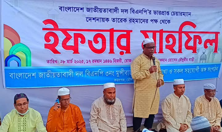 বিএনপির ভারপ্রাপ্ত চেয়ারম্যান জনাব তারেক রহমান এর পক্ষ থেকে কমলগঞ্জ উপজেলার ৩নং মুন্সি বাজার ইউনিয়ন বিএনপি ও অঙ্গ সহযোগী সংগঠনের উদ্যোগে ১৮ মার্চ মঙ্গলবার লোকমান হোসেন চৌধুরীর বাড়িতে আলোচনা সভা, দোয়া ও ইফতার মাহফিল অনুষ্ঠিত হয়। উক্ত আলোচনা সভা ৩নং মুন্সিবাজার ইউনিয়ন বিএনপির সভাপতি ও কমলগঞ্জ উপজেলা বিএনপির আহবায়ক কমিটির সদস্য লোকমান হোসেন চৌধুরীর সভাপতিত্বে ও মুন্সি বাজার ইউনিয়ন যুবদলের সদস্য সচিব আব্দুল খালিকের সঞ্চালনায় প্রধান অতিথি হিসেবে উপস্থিত ছিলেন মৌলভীবাজার জেলা বিএনপির আহবায়ক কমিটির সদস্য দুরুদ আহমেদ মাস্টার,