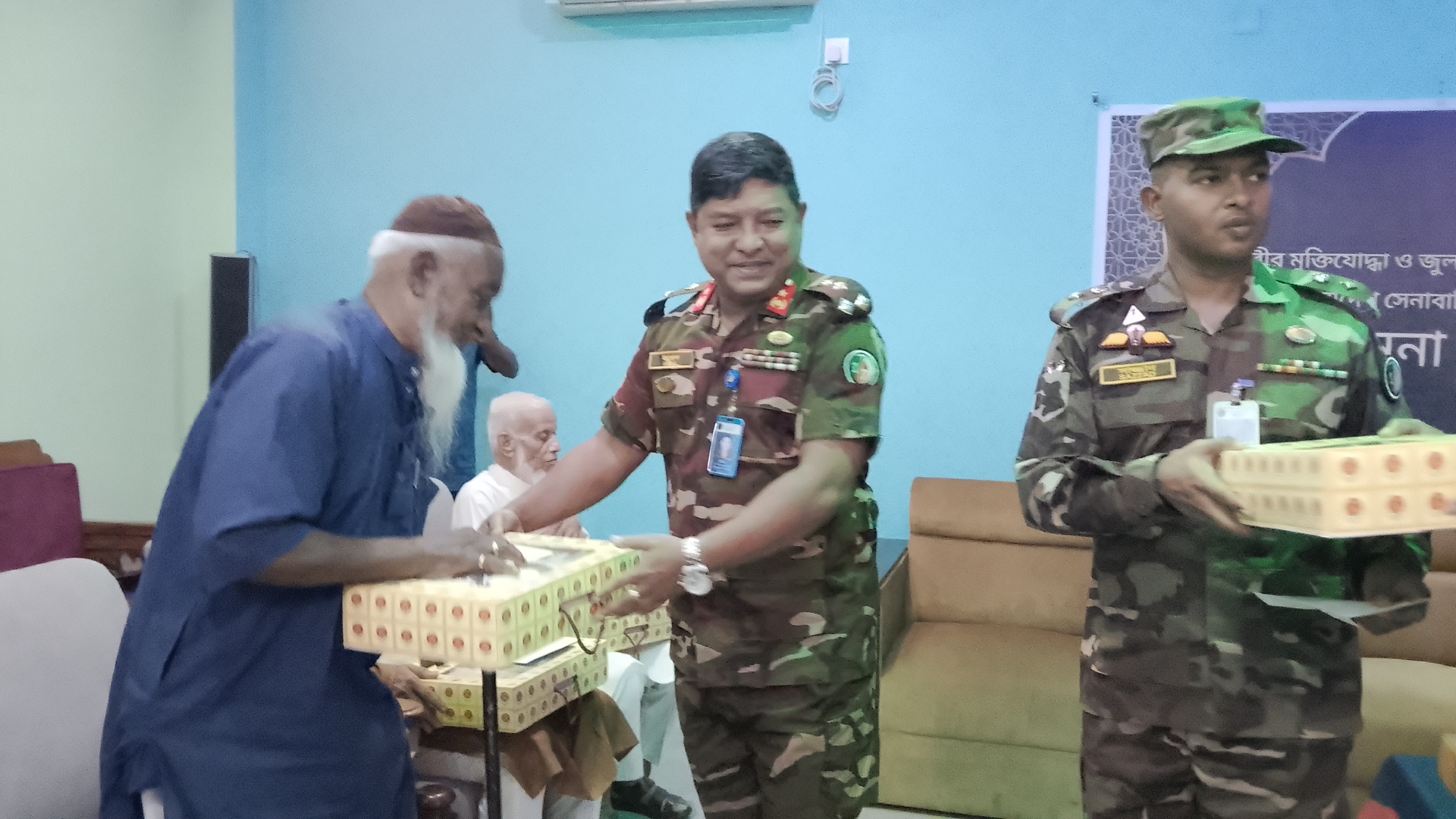 মৌলভীবাজার জেলার কেন্দ্রীয় ইফতারে ১৭ আর্টিলারি ব্রিগেডের ব্রিগেড কমান্ডার ব্রিগেডিয়ার জেনারেল মোঃ ইমরুল মাবুদ,এসইউপি,এনডিসি,এএফডব্লিউসি,পিএসসি, এমফিল উপস্থিত থেকে আগত অতিথিদের সাথে মতবিনিময় এবং আসন্ন ঈদ-উল-ফিতর উপলক্ষে ঈদ উপহার প্রদান করেন।এসময় শাহাদৎ বরণকারী মুক্তিযোদ্ধা ও জুলাই-আগস্ট গণঅভ্যুত্থানে নিহতদের রুহের মাগফিরাত, আহতদের পরিপূর্ণ সুস্থতা এবং দেশ ও জাতির মঙ্গল কামনা করে মোনাজাত করা হয়। অনুষ্ঠানে এই অঞ্চলের মুক্তিযোদ্ধা ও জুলাই-আগস্ট গনঅভ্যুত্থানে আহত নিহতদের পরিবারের সদস্যবৃন্দ, জেলা প্রশাসক প্রতিনিধি,ও সাংবাদিকরা উপস্থিত ছিলেন।