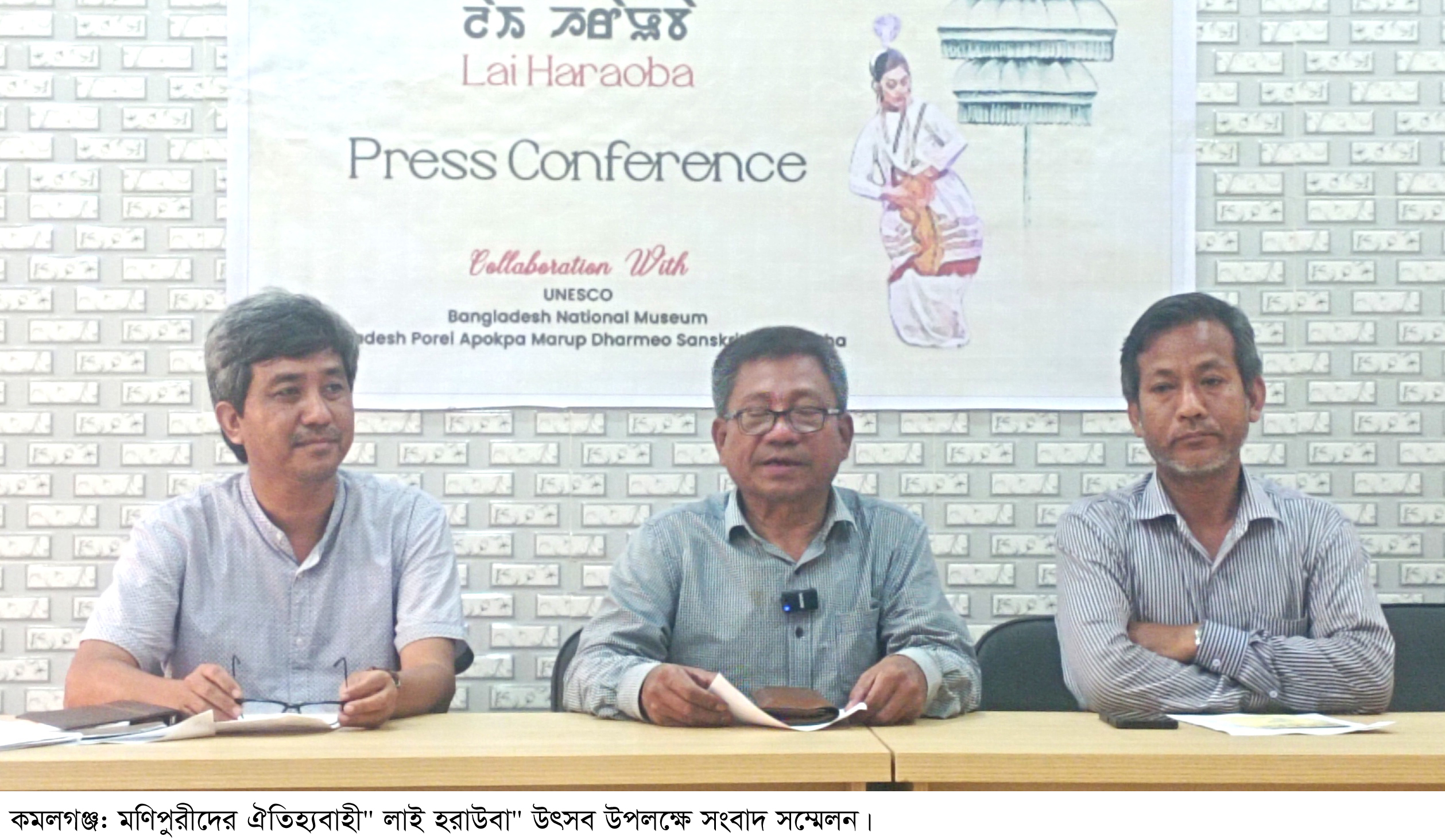 মৌলভীবাজারের কমলগঞ্জ উপজেলার আদমপুরের তেতইগাঁও গ্রামে মণিপুরি কালচারাল কমপ্লেক্সে আগামী ২৩-২৫ এপ্রিল তিন দিনব্যাপি অনুষ্ঠিত হবে মণিপুরিদের ঐতিহ্যবাহী" লাই হরাউবা" উৎসব অনুষ্ঠিত হতে যাচ্ছে। অনুষ্ঠানের বিষয়বস্তু তুলে ধরতে রোববার (২০ এপ্রিল) বিকাল ৪টায় কমলগঞ্জ প্রেসক্লাবে সংবাদ সম্মেলন করেন আয়োজক কমিটি । "লাই হরাউবা" উৎসব আয়োজনের বিভিন্ন বিষয়বস্তু তুলে ধরে লিখিত বক্তব্য পাঠ করেন "লাই হরাউবা " উৎসব স্টিয়ারিং কমিটির সদস্য সচিব ওইমান লানথৈই। এসময় উপস্থিত ছিলেন উৎসব কমিটির আহবায়ক ইবুংহাল শ্যামল, সদস্য রবি কিরণ রাজেশ প্রমুখ।