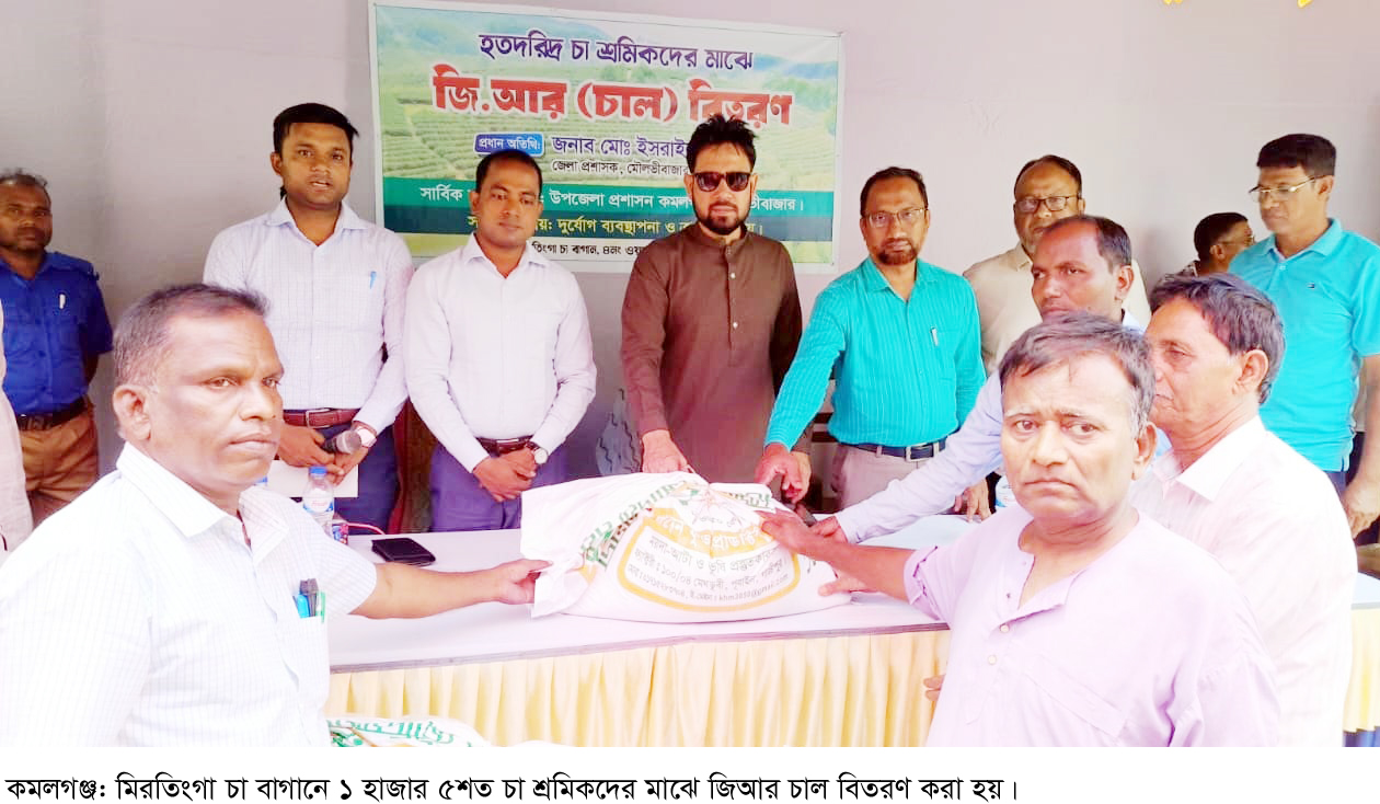 মৌলভীবাজারের কমলগঞ্জ উপজেলার মিরতিংগা চা বাগানে ৬ সপ্তাহ ধরে মজুরি বন্ধ। কাজ ও মজুরী বন্ধ থাকায় চা শ্রমিকরা মানবেতর জীবন যাপন করছেন। তাদের মানবেতর জীবন যাপনের কারনে মৌলভীবাজারের জেলা প্রশাসকের বিশেষ বরাদ্দকৃত জিআর এর ৩০ মেট্রিক টন চাল বন্টন করার উদ্যোগ নেয় জেলা প্রশাসন কার্যালয়। শনিবার (২৬ এপ্রিল) সকাল ১১টায় উপজেলার রহিমপুর ইউনিয়নের মিরতিংগা চা বাগানে উপস্থিত থেকে ১ হাজার ৫শত চা শ্রমিকদের মধ্যে ২০ কেজি করে চাল বিতরণ কার্যক্রম উদ্বোধন করেন মৌলভীবাজারের অতিরিক্ত জেলা প্রশাসক (সার্বিক) বুলবুল আহমেদ।