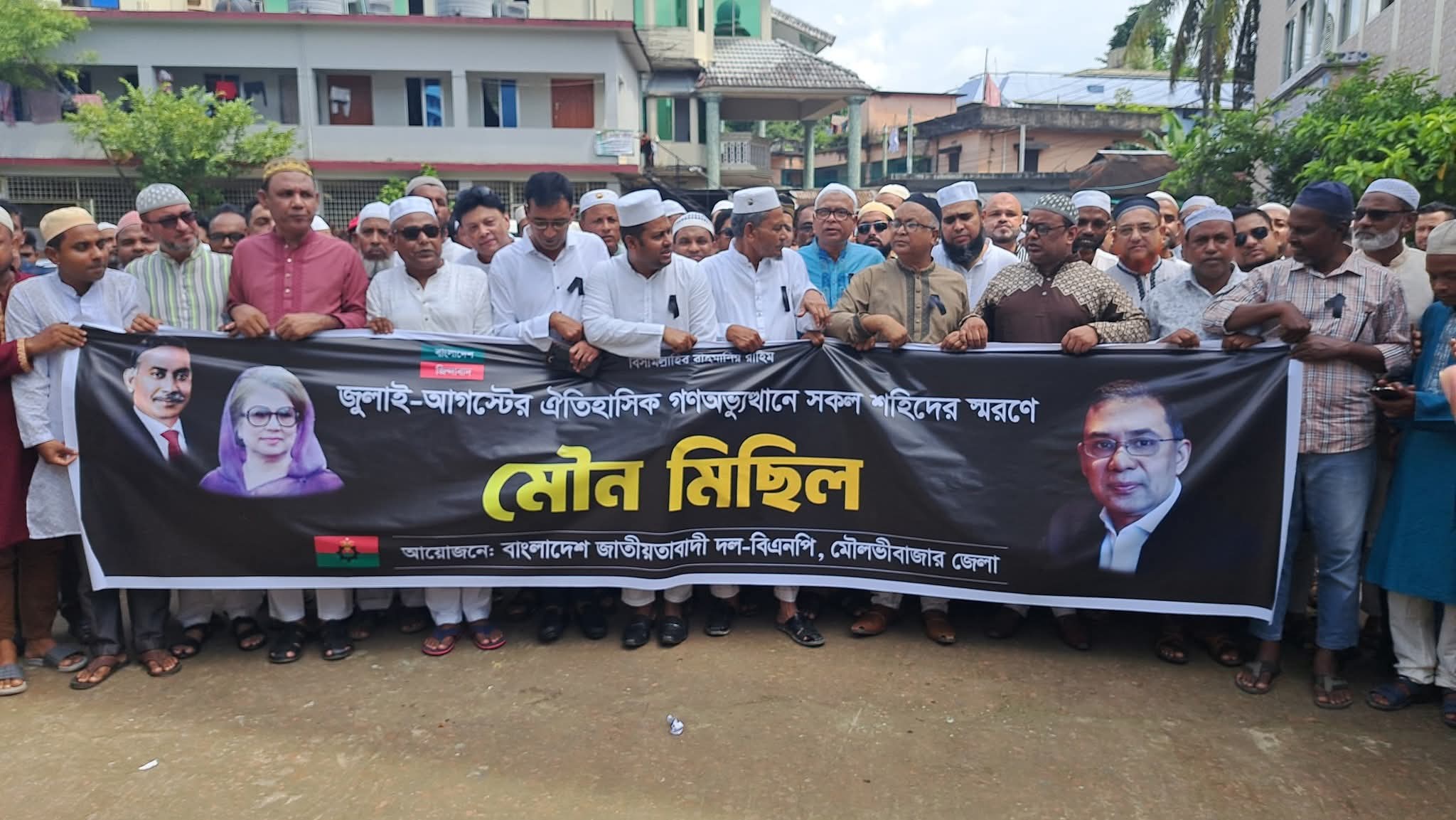 ঐতিহাসিক জুলাই-আগস্ট গণঅভ্যুত্থানে শহিদদের স্মরণে মৌণ মিছিল করেছে মৌলভীবাজার জেলা বিএনপি।