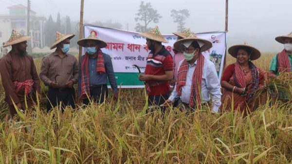 নিজস্ব প্রতিবেদক ঃ মৌলভীবাজার জেলার জেলা প্রশাসক নিজ হাতে কাঁচি নিয়ে কৃষকের আমন ধান কাটলেন। আমন ধান কর্তন ও নবান্ন উৎসবে জেলা প্রশাসকের নেতৃত্বে ঘরে উঠল কৃষকের পাকা ধান।