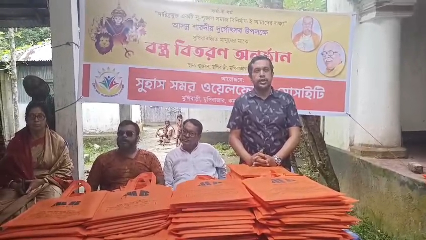 শারদীয় দুর্গাপূজা উপলক্ষে মৌলভীবাজার জেলার কমলগঞ্জ উপজেলার ১নং রহিমপুর ইউনিয়নের মুন্সিবাজার মুন্সিবাড়ির কুঞ্জবনে রবিবার ২৮ সেপ্টেম্বর দুপুরে সুহাস সমর ওয়েলফেয়ার সোসাইটি এর আয়োজনে প্রায় ২শত অসহায় হিন্দু ও মুসলিম পরিবারের মাঝে নতুন শাড়ি ও কাপড় বিতরণ করা হয়েছে।