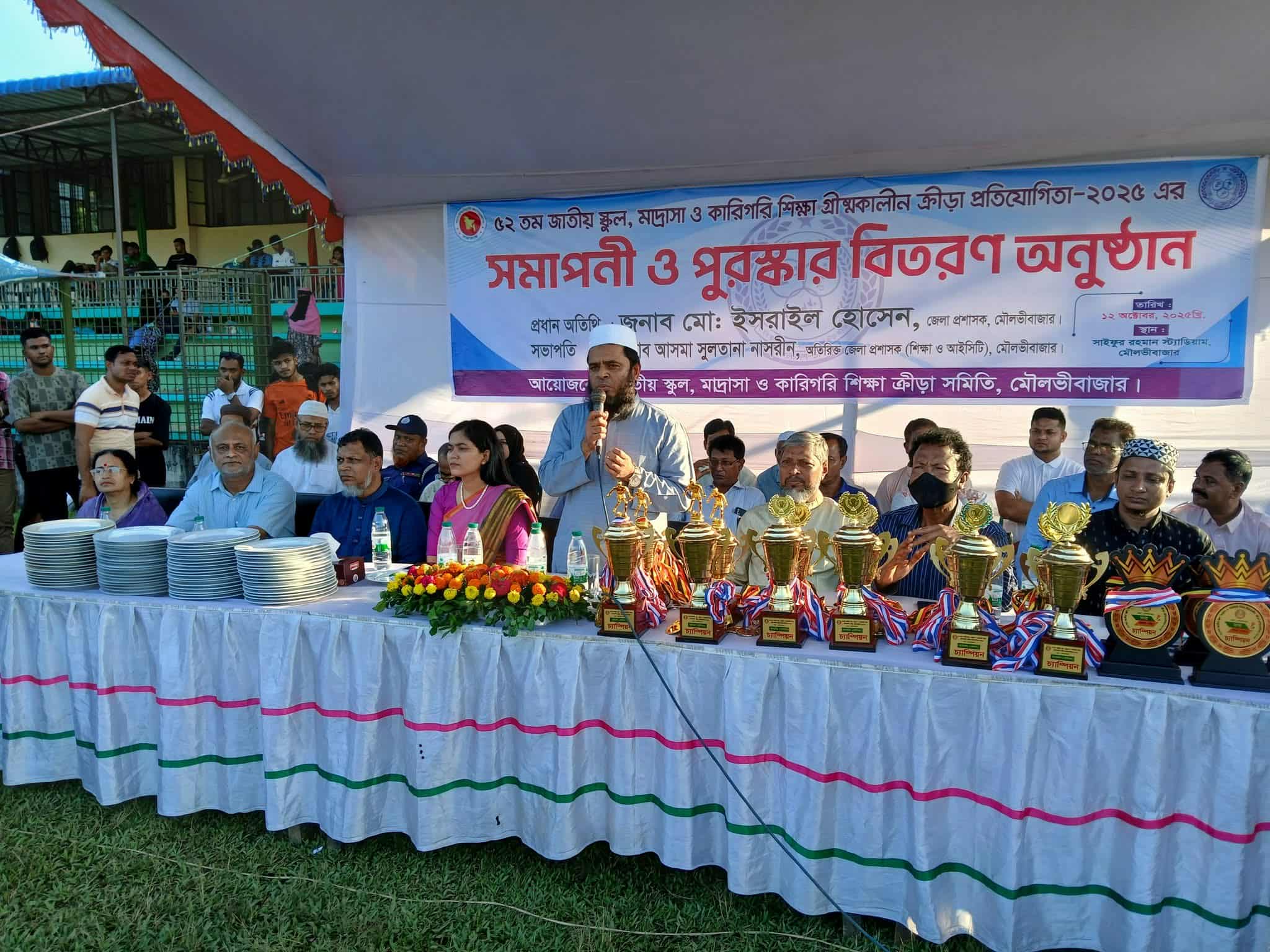 ১২ অক্টোবর রবিবার মৌলভীবাজারের এম সাইফুর রহমান স্টেডিয়ামে জাতীয় স্কুল, মাদ্রাসা ও কারিগরি শিক্ষা ক্রীড়া মৌলভীবাজার জেলা পর্যায়ের সমাপনী ক্রীড়া প্রতিযোগিতার সমাপনী ও পুরস্কার বিতরণী অনুষ্ঠান সম্পন্ন হয়েছে।