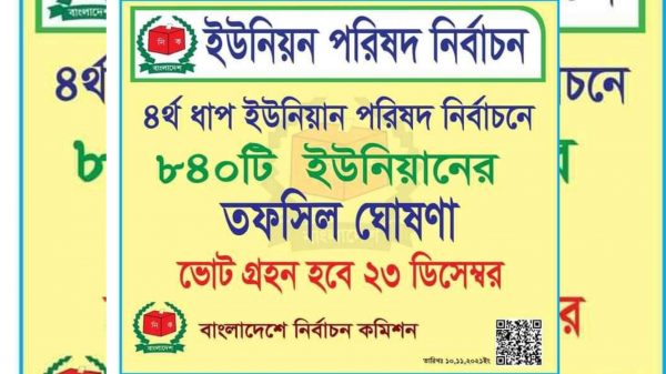 ডেস্ক রিপোর্ট ঃ চতুর্থ ধাপের তফসিল ঘোষণা করেছে নির্বাচন কমিশন (ইসি)। তফসিল অনুযায়ী, আগামী ২৩ ডিসেম্বর সারাদেশের ৮৪০টি ইউনিয়ন পরিষদে জনপ্রতিনিধি নির্বাচনে ভোট নেওয়া হবে।বুধবার (১০ নভেম্বর) দুপুরে কমিশনের বৈঠক