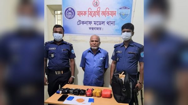 কক্সবাজার প্রতিনিধি ঃ টেকনাফ মডেল থানা পুলিশের অভিযানে ২০,০০০ (বিশ হাজার) পিস ইয়াবা উদ্ধার এবং মাদক কারবারে ব্যবহৃত ১টি মোবাইল সহ একজন মাদক কারবারী গ্রেফতার। অদ্য ১৬/০৯/২০২১ খ্রিঃ তারিখ রাত