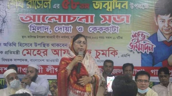মো: মুক্তাদির হোসেন।গাজীপুর কালীগন্জ উপজেলা প্রতিনিধিঃঃ বিভিন্ন আয়োজন এ গাজীপুরের কালীগন্জ উপজেলায় সকাল ১১টার সময় কালীগন্জ পৌর সভার পৌর মিলনায়তন এ শেখ রাসেল এর ৫৮তম জন্ম বার্ষিকী উপলক্ষে কালীগন্জ পৌর