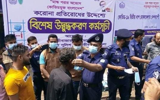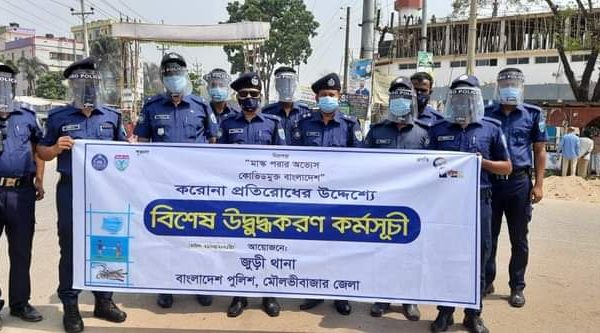 জুড়ী প্রতিনিধিঃ “মাস্ক পরার অভ্যেস,কোভিডমুক্ত বাংলাদেশ”বাস্তবায়নে মাঠে নেমেছে বাংলাদেশ পুলিশ।করোনা ভাইরাস প্রতিরোধের উদ্দেশ্যে জুড়ী থানা পুলিশের বিশেষ উদ্ধুদ্ধকরণ কর্মসূচি ও মাস্ক বিতরণ করা হয়েছে। রোববার (২১ মার্চ) সকাল ১১টায় জুড়ী থানার