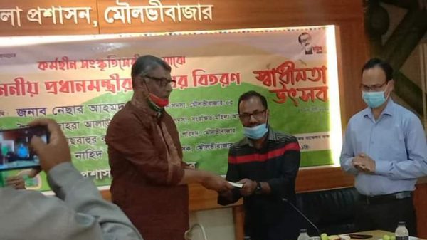 অগ্রযাত্রা সংবাদঃ মৌলভীবাজারে ১২ দিনব্যাপী স্বাধীনতা উৎসবের ৫ম দিনে প্রধানমন্ত্রীর উপহার পেয়েছেন কর্মহীন সংস্কৃতিসেবীরা। রোববার মৌলভীবাজার জেলা প্রশাসনের আয়োজনে জেলা প্রশাসক সম্মেলন কক্ষে জেলার কর্মহীন সংস্কৃতিসেবীদের প্রধানমন্ত্রীর এই উপহার দেওয়া হয়।
