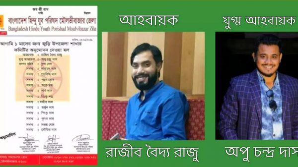জালালুর রহমান,জুড়ী(মৌলভীবাজার): বাংলাদেশ হিন্দু যুব পরিষদ মৌলভীবাজার জেলা শাখার অনুমোদন এ,মৌলভীবাজারের জুড়ী উপজেলা শাখার আহবায়ক কমিটি অনুমোদন করা হয়েছে। গত ৫/জানুয়ারী/২০ ইং।মৌলভীবাজার জেলা শাখার সভাপতি সুব্রত মল্লিক শুভ,যুগ্ম সম্পাদক সৌরভ