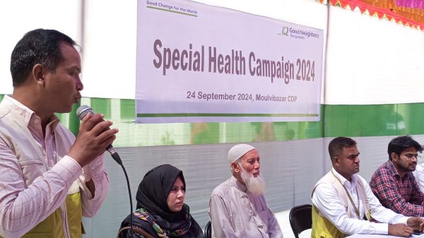 কমলগঞ্জ প্রতিনিধিঃ আন্তর্জাতিক বেসরকারি উন্নয়ন সংস্থা গুড নেইবারস বাংলাদেশ মৌলভীবাজার সিডিবি’র আয়োজনে স্পেশাল হেলথ ক্যাম্পেইন ২০২৪ মৌলভীবাজারের কমলগঞ্জে অনুষ্ঠিত হয়েছে। মঙ্গলবার (২৪ সেপ্টেম্বর) বেলা ১১টায় কমলগঞ্জ উপজেলার আদমপুর ইউনিয়নের নয়াপত্তস্থ