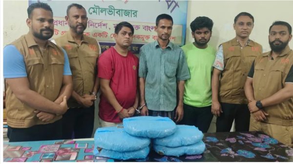 নিজস্ব প্রতিবেদকঃ শ্রীমঙ্গল থেকে ৫ কেজি গাঁজাসহ ৩ মাদক কারবারিকে গ্রেপ্তার করেছে মৌলভীবাজার জেলা গোয়েন্দা শাখার (ডিবি)। রোববার ২২ সেপ্টেম্বর রাতে জেলা গোয়েন্দা শাখার এসআই মাহমুদুর রহমান এর নেতৃত্বে ডিবির
