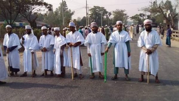 বাহুবলে কাফনের কাপড় পরে পিকেটিং হেফাজতের
