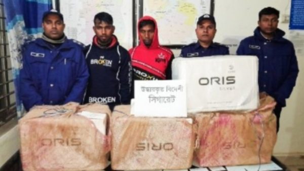 কমলগঞ্জ প্রতিনিধিঃ কমলগঞ্জ থানা পুলিশের বিশেষ অভিযানে অবৈধ পথে আসা ২০০০ প্যাকেট বিদেশী সিগারেটসহ দুইজনকে আটক করা হয়েছে। আটককৃত ব্যক্তিরা হলেন কুলাউড়া উপজেলার ঢালিয়া গ্রামের শামিম আহমেদ (২৬) এবং আমুলী