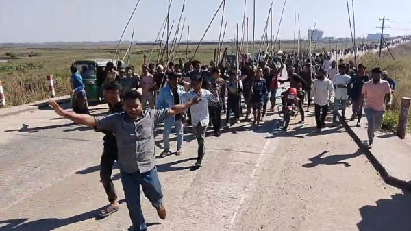 নিজস্ব প্রতিবেদক:সিলেটের সীমান্তবর্তী উপজেলা কোম্পানীগঞ্জে গতকাল শনিবার রাতে ৪ ঘন্টা টানা সংঘর্ষের পর রবিবার (১৫ ডিসেম্বর) সকাল থেকে ফের রণক্ষেত্রে পরিণত হয়েছে উপজেলাটি। সকাল থেকে মাইকে গ্রামবাসীকে লাঠিসোটা নিয়ে সংঘর্ষে
