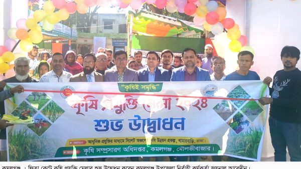 কমলগঞ্জ (মৌলভীবাজার) প্রতিনিধি : মৌলভীবাজারের কমলগঞ্জে আধুনিক প্রযুক্তির মাধ্যমে সিলেট অঞ্চলের কৃষি উন্নয়ন প্রকল্প, খামারবাড়ি, ঢাকা এর অর্থায়নে ৩দিন ব্যাপি কৃষি প্রযুক্তি মেলার শুভ উদ্বোধন করা হয়েছে। মঙ্গলবার (১৭ ডিসেম্বর)