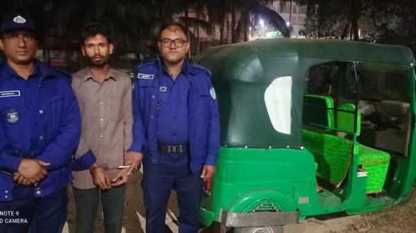 মৌলভীবাজার প্রতিনিধিঃমৌলভীবাজার সদর থানা পুলিশের বিশেষ অভিযানে একটি চোরাই সিএনজি চালিত অটোরিকশাসহ রাসেল আহমেদ (২৫) নামে একজনকে আটক করা হয়েছে। সোমবার (৯ ডিসেম্বর) মৌলভীবাজার সদর থানার এসআই পার্থ রঞ্জন চক্রবর্তী
