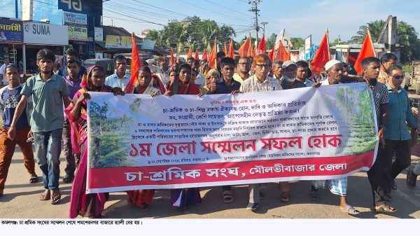 মৌলভীবাজার প্রতিনিধি: মৌলভীবাজারের কমলগঞ্জে চা শ্রমিক সংঘের সম্মেলনে বাংলাদেশ ট্রেড ইউনিয়ন সংঘ কেন্দ্রীয় কমিটির সভাপতি শ্রমিকনেতা চৌধুরী আশিকুল আলম ‘চা-শ্রমিকদেরকে সবচেয়ে অবহেলিত শ্রমিক আখ্যায়িত’ করে বলেন চা-শিল্পের ১৭০ বছর পরও