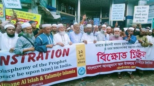 ওআইসির সম্মেলন ডেকে মুসলিম উম্মাহর পক্ষ থেকে কঠোর পদক্ষেপ গ্রহণের আহ্বান ———সমাবেশে বক্তারা অগ্রযাত্রা সংবাদ ঃ ভারতে হযরত মুহাম্মদ (সা.)-কে নিয়ে কটূক্তি ও চরম অবমাননাকর মন্তব্যের প্রতিবাদে বাংলাদেশ আনজুমানে আল