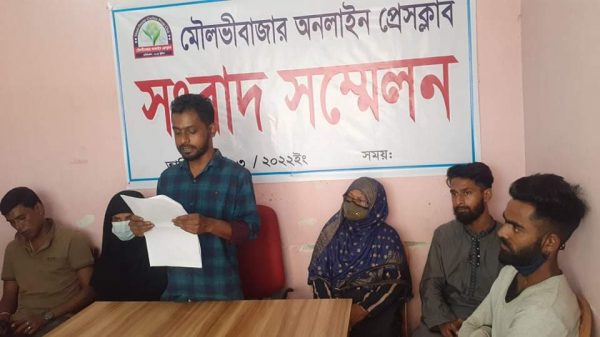 মশাহিদ আহমদ ঃ প্রকৃত রহস্য উদঘাটন করে মিথ্যা মামলার দায় হইতে অব্যাহতি এবং দোষীদের দৃষ্টান্তমূলক শাস্তির দাবীতে মৌলভীবাজার অনলাইন প্রেসক্লাবে ভুক্তভোগী পরিবারের সংবাদ সম্মেলন অনুষ্টিত হয়েছে আজ ১৪ মার্চ দুপুরে।