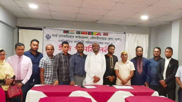 মৌলভীবাজার প্রতিনিধি ঃ সার্ক মানবাধিকার ফাউন্ডেশন, মৌলভীবাজার জেলা শাখার নবনির্বাচিত কার্যকরী পরিষদের ঈদ পুনর্মিলনী ও প্রথম সভা অনুষ্ঠিত হয়েছে, ২২ মে রবিবার সন্ধা ৭ টায় রেস্ট ইন রেস্টুরেন্ট,কুসুমবাগ, মৌলভীবাজার এ