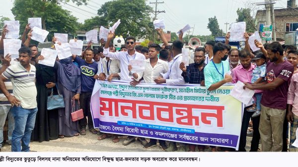 কমলগঞ্জ (মৌলভীবাজার) প্রতিনিধি:মৌলভীবাজারের কমলগঞ্জে পল্লী বিদ্যুতের ভূয়া বিদ্যুৎ বিল আদায়, বিদ্যুৎ এর ইউনিটের মূল্য দূরীকরণ, মানহীন মিটার তুলে নেওয়াসহ সমিতির কর্মকর্তা-কর্মচারীদের বিরুদ্ধে ভূতুড়ে বিল তৈরিসহ নানা অনিয়ম-দুর্নীতির অভিযোগ তুলে সড়ক