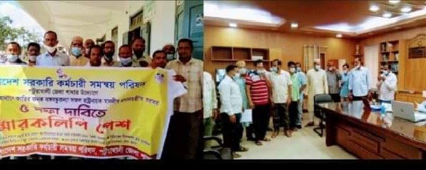 পটুয়াখালী প্রতিনিধিঃ জাতির জনক বঙ্গবন্ধুকন্যা সফল রাষ্ট্র নায়ক মাননীয় প্রধানমন্ত্রী বরাবর নবম বেতন কমিশন গঠন,সচিবলায়ের মতো পদবি পরিবর্তন,বেতন বৈষম্য নিরসন, টাইমস্বেল সিলেকশন গ্রেড পুর্নবহাল,মূল বেতনের ৪০ শতাংশ মহার্ঘ ভাতা প্রদানসহ ৫দফা পূরণের জন্য বিক্ষোভ সমাবেশ ও স্মারকলিপি জেলা প্রশাসক এর নিকট পেশ করেছেন বাংলাদেশ সরকারি কর্মচারী সমন্বয় পরিষদ জেলা শাখার নেতৃবৃন্দ। আজ রবিবার বেলা ১২টায়